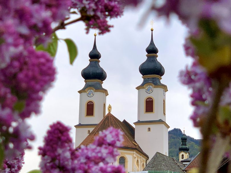 Freude und Hoffnung besteht derzeit bei den Kirchen. Ab dem 4. Mai dürfen wieder Gottesdienste im Freistaat abgehalten werden – wenn auch in beschränktem Umfang. Ein Schutzkonzept befindet sich aktuell noch in Abstimmung mit der bayerischen Staatsregierung teilte das Erzbistum München und Freising. Passend zu dieser Nachricht umhüllt derzeit dieser blauviolett blühende Flieder die Katholische Pfarrkirche von Aschau i.Chiemgau „Darstellung des Herrn“. Ein duftender Hauch wird dabei versprüht und zieht dabei besondere Blickwinkel auf das besondere Gotteshaus am Fuße der Kampenwand.