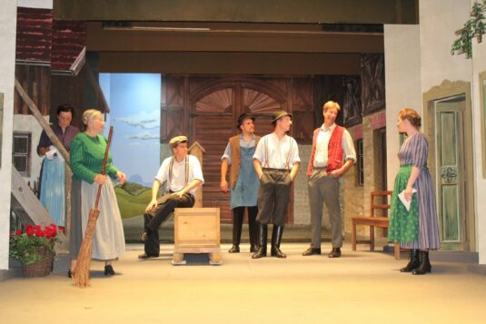 Diese Leistung fand auch ihren Ausdruck im Gesamtbild: Das Bühnenbild von Bernhard und Simon Obermair zeigte mit viel Detailtreue Hof, Markt und Gästezimmer – alles sorgsam gestaltet und stimmig in Szene gesetzt. Historische Kostüme unterstrichen die Zeitstimmung, ohne museal zu wirken. Eine besondere Stärke lag in der Musik: Die neu komponierten Zwischenspiele, live dargeboten von der Theatermusik, verbanden die Szenen mit stilistischer Eleganz und verliehen dem Abend einen ganz eigenen Klangrahmen.