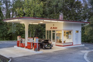 Seither stand das Gebäude unverändert an der heutigen B 305 und wartete auf eine neue Bestimmung. Erst im Herbst 2019 kam Bewegung in die Sache, denn die Tankstelle sollte einer neuen Ortsgestaltung weichen. Das Freilichtmuseum Glentleiten rettete das Gebäude kurz vor dem Abriss und kann nun mit einer neuen, in Bayerns Freilichtmuseen bislang einzigartigen Attraktion aufwarten. Für Museumsleiterin Dr. Monika Kania-Schütz ist die Tankstelle ein ganz besonderer Neuzugang, denn, „die Tankstelle ist ein Schlüsselobjekt der Mobilitätsgeschichte, die gerade in einem rasanten Wandel begriffen ist. Als zentrales oberbayerisches Freilichtmuseum zeigen wir den Wandel auf dem Land. Und da gibt es zahlreiche Bezugspunkte zu diesem Denkmal wirtschaftlichen und gesellschaftlichen Wandels, angefangen von der sich verändernden Arbeitswelt über die Freizeitkultur bis hin zum Einzug moderner Baumaterialien Beton und Glas. Ich freue mich besonders, dass wir zeitgleich zur Eröffnung eine reich bebilderte Publikation vorlegen konnten, die das neue Architekturexponat unterhaltsam in Zusammenhänge stellt.“