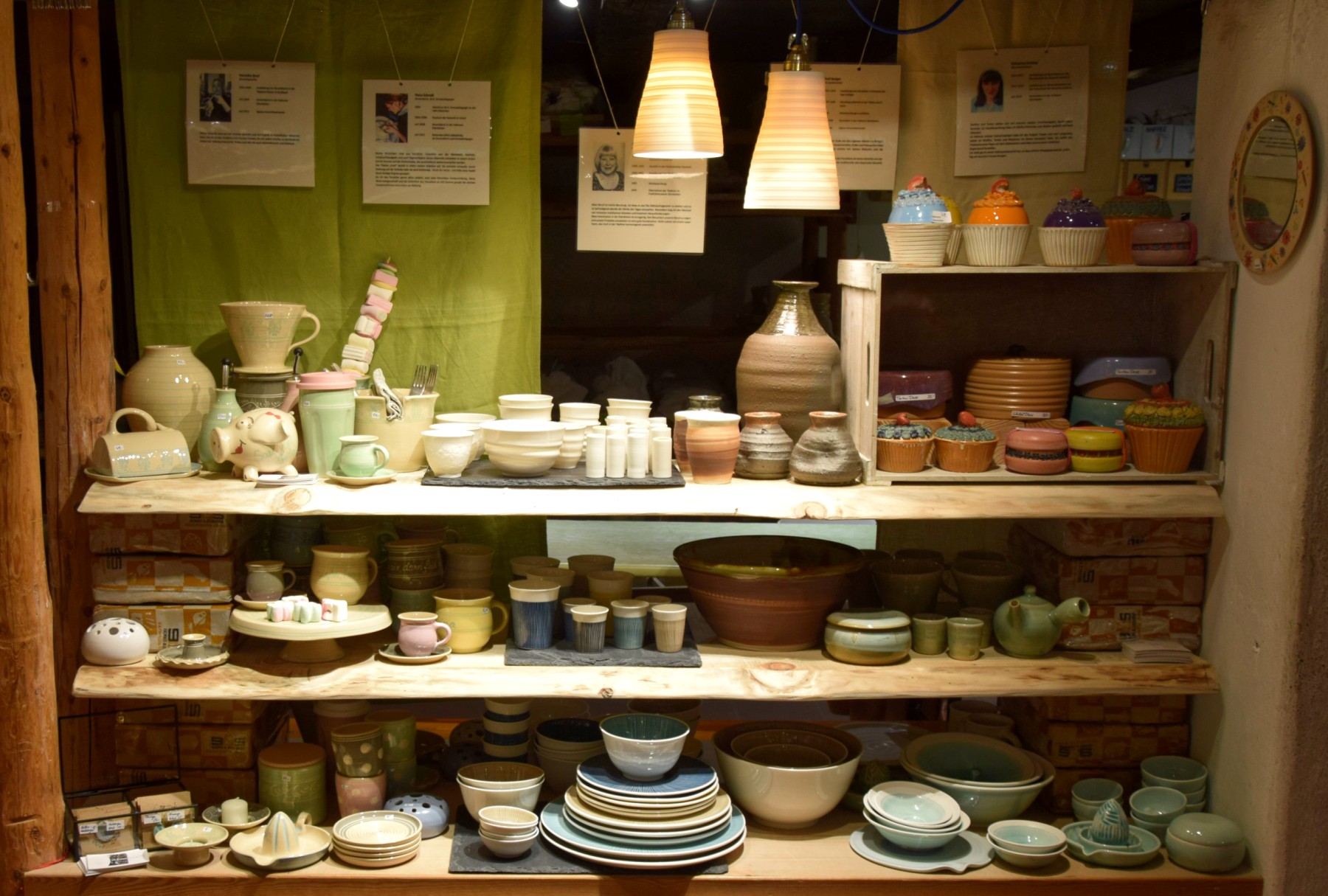 Während der Keramikwoche zeigt das Team der Hafnerei Glentleiten auch die jeweils individuellen Werkstücke der einzelnen Töpfer und Keramikerinnen. Bildquelle: Bezirk Oberbayern, Archiv FLM Glentleiten.