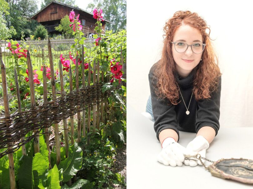 Bericht und Bilder: Bezirk Oberbayern / FLM Glentleiten – FotoTacke: Lea Sophie Rodenberg ist Textilexpertin und bietet am Sonntag eine Sprechstunde mit Beratung zu Kleidung und Accessoires an.