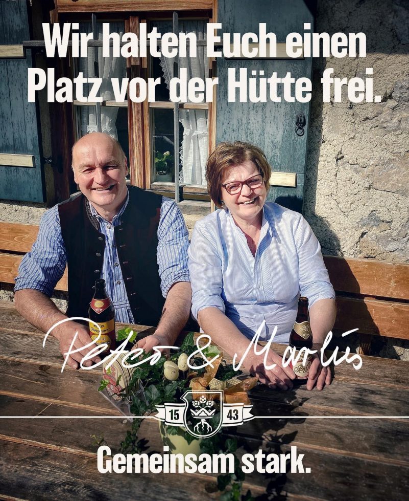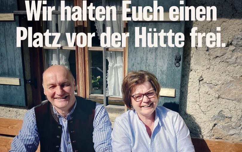 Ein Wirts-Ehepaar, das sich an der Flötiznger-Initiative beteiligt sind Marlies und Peter Wiesholzer von der Käseralm auf dem Samerberg nahe der Hochriesbahn-Mittelstation – ihr Motto: “Wir halten Euch einen Platz vor der Hütte frei”.