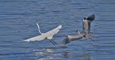 An der Hirschauer Bucht angekommen übten sich schon die Bachstelzen im Tiefflug über dem See. Kiebitze drehten über der Bucht in Gruppen ihre Runden. Der Eisvogel zeigte sein fliegerisches Können knapp über dem Wasser und überzeugte selbst ein Blässhuhn mit einer punktgenauen Landung aus voller Fahrt. Gleiches zeigte der Flussuferläufer vor den Augen einer Schildkröte, die sich davon aber wenig beeindrucken ließ. Der Grünschenkel zog durch die neugierigen Enten elegant seine Kurven. Zwischendurch erbeutete der Eisvogel ein kleines Fischlein und präsentierte es geschickt im Flug. Nach einem gesprungenem Wasserstart schüttelte sich der Graureiher das Wasser aus dem Gefieder und drehte in einer Steilkurve vor dem Turm ab. An einer Start-/Landebahn kam es dann zwischen zwei übermütigen Graureihern fast zu einer Kollision. Zu was ein für die Jagd extrem optimierte Körper fähig ist zeigte der Eisvogel, als er mit fast “Überschallgeschwindigkeit” durch die Menge und am Turm vorbei “donnerte”. Zum Abschluss drehte eine Bekassine noch eine Platzrunde, bevor sie entlang der Uferlinie entschwand.