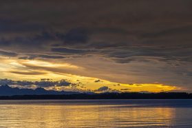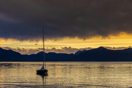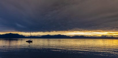 Kurz vor Sonnenuntergang machte ich bei der Heimreise noch einen Zwischenstopp in Seebruck, der mit faszinierenden Bildern vom über dem Alpenkamm brausenden Föhnsturm belohnt wurde.