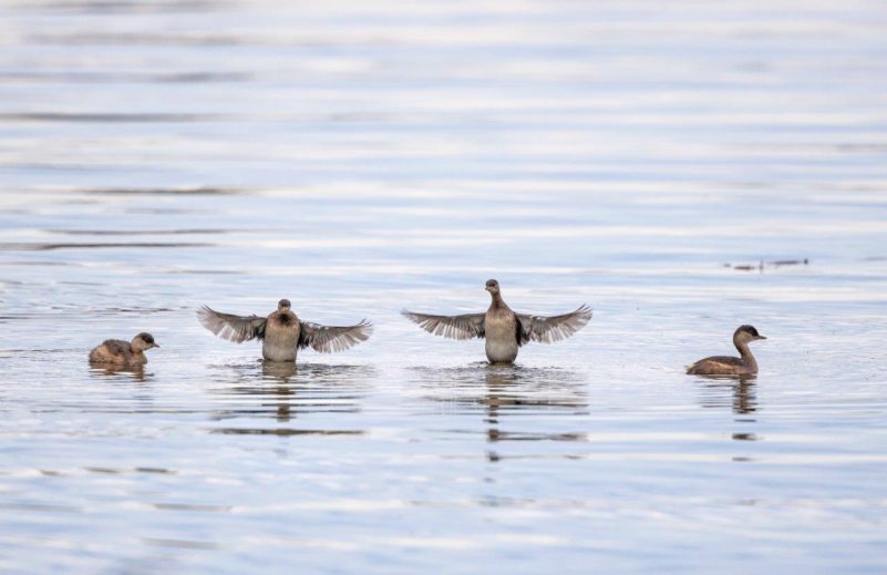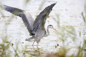Am Beobachtungsturm in der Hirschauer Bucht veranlasste der durch kräftige Regenfälle wieder gestiegene Wasserstand im See Reiher in unmittelbarer Ufernähe zu jagen. Immer wieder zogen Graugansschwärme durch die Bucht und geschäftige Zwergtaucher boten nette Fotomotive.