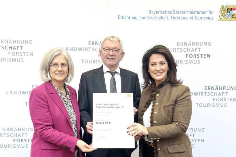 Mehr bayerische Lebensmittel auf Tellern im Großraum Nürnberg – bei diesem Ziel unterstützt das Bayerische Staatsministerium für Ernährung, Landwirtschaft, Forsten und Tourismus die Europäische Metropolregion Nürnberg. Auf der Weltleitmesse für ökologische Konsumgüter BIOFACH 2025 übergab Staatsministerin Michaela Kaniber der Europäischen Metropolregion Nürnberg e.V. einen Förderbescheid in Höhe von rund 546.000 €. In den kommenden zwei Jahren soll damit eine Entwicklungsagentur für regionale und bio-regionale Beschaffung für die Gemeinschaftsverpflegung in der Metropolregion Nürnberg eingerichtet werden.