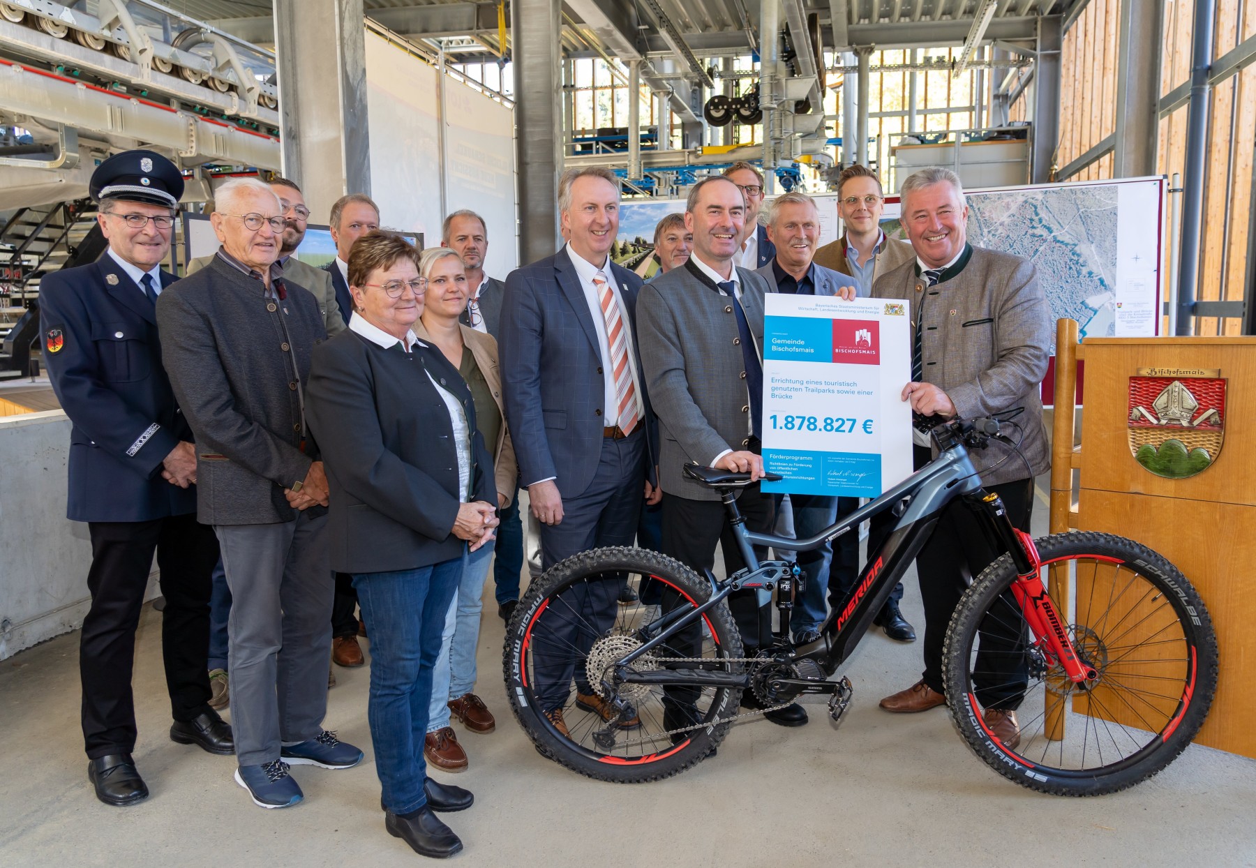 Wirtschaftsminister Hubert Aiwanger bei der Übergabe des Förderbescheids in Bischofsmais © StMWi/E. Neureuther