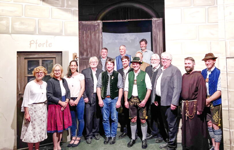 Bericht und Foto: Bad Endorfer Volkstheater – Förderung – 1. von links: Kulturreferentin Magdalena Restle, Spielleiterin Paula Aiblinger, Daniela Aiblinger, Gemeinderatsmitglied (Parteilos) Gerhard Schloots, MdL Josef Lausch (Freie Wähler), MdL Nikolaus Kraus (Freie Wähler), Bezirksrat Sepp Hofer (Freie Wähler), Erster Vorstand Konrad Schlaipfer, Erster Bürgermeister Alois Loferer, 2. Bürgermeister Wolfgang Kirner, 3. Bürgermeister Eduard Huber, Landesvorstand Bayernbund Sebastian Friesinger (CSU), Fraktionsvorsitzender Freie Wähler Helmut Fleidl, Hauptdarsteller Konrad Hamberger, Zweiter Vorstand Peter Bichler