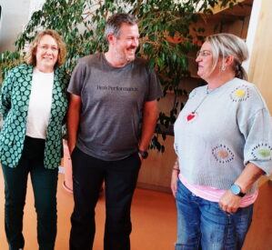 Einrichtungsleiter Christoph Cramme links dankt der bisherigen Vorsitzenden Des Fördervereins Mechtild Faller-Obermeier und Lisbeth Weiß (links) für ihren jahrzehntelangen Einsatz für Förderverein und Schule.