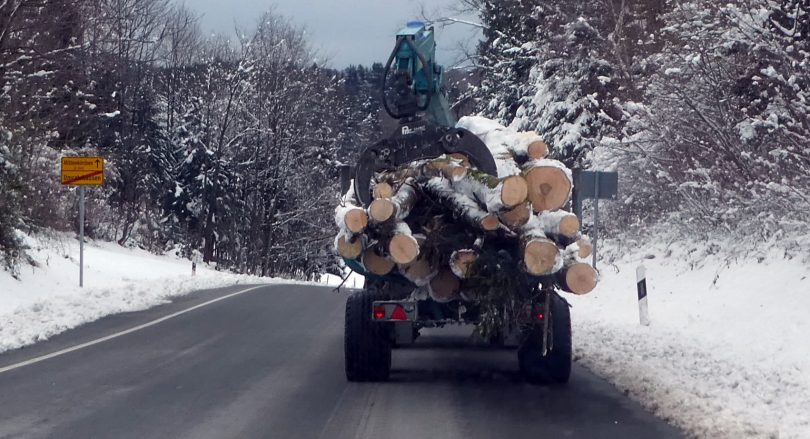 Die Adventzeit ist auch Zeit zur Forst- und Waldarbeit, insbesondere wenn es die Boden-, Schnee- und Witterungsverhältnisse zulassen. Derzeit sind die Bedingungen gut, so dass immer wieder Fuhren mit frisch gearbeiteten Bäumen aus den heimischen Wäldern zu sehen sind – wie auf diesem aktuellen Bild in Umratshausen.