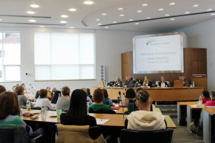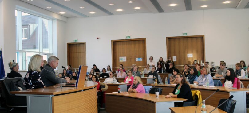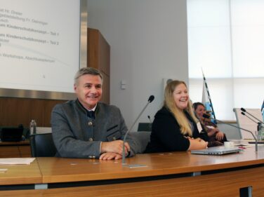 Bericht und Bilder: LRA Landshut – Landrat Peter Dreier und die Sachgebietsleiterin Christine Deininger begrüßten die Teilnehmerinnen und Teilnehmer bei der Kita-Fachtagung zum Thema Schutzkonzept.