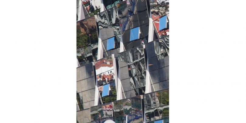 Bildrechte: Renate M. Mayer – Neu in Neu – die Eingangsseite des Guggenheim-Museums spiegelt sich in einer Hotelfassade.