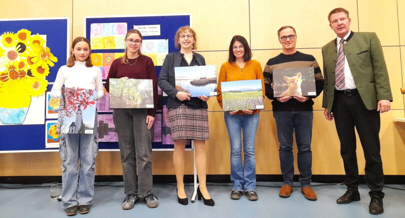 Teil der Aktivitäten vom Kultur- und Kunstkreis Rimsting zum Jahreswechsel ist auch eine Prämierung zum Fotowettbewerb über das Jahr über von Gemeinde und Tourist-Information. Die heurigen Gewinner wurden von Bürgermeister Andreas Fenzl bei der Vernissage ausgezeichnet. Das Foto der Gewinner zeigt von links nach rechts: Felicia Zernikow, Emilia Wandersleb (beides Gewinnerinnen Bereich Jugend), Gisela Lackerschmid (3. Platz), Monika Frommwieser (2. Platz), Ingo Wichmann (1. Platz) mit Ersten Bürgermeister Andreas Fenzl..