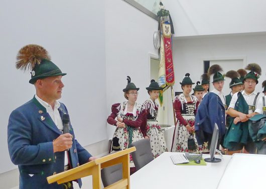 Fotos: Hötzelsperger – Franz Praßberger im Vorjahr als im Rathaus-Sitzungssaal ein Empfang für den Chiemgau-Alpenverband anlässlich des Gaufestes in Bernau stattfand.