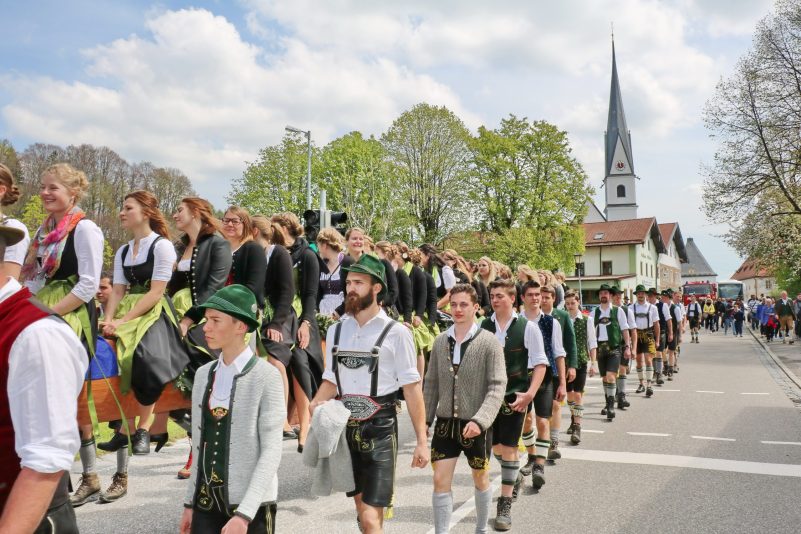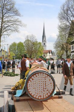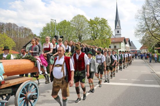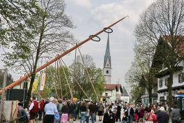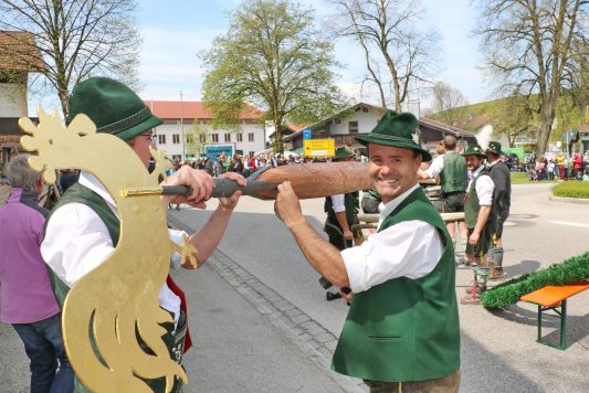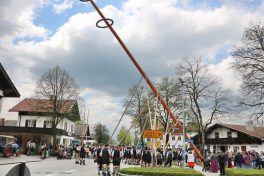 Maibaumaufstellen in Frasdorf am Sonntag, 1. Mai ab 12 Uhr vor der Lamstoahalle mit dem Trachtenverein Frasdorf und den unbekannten Maibaumdieben, Einzug des Festzugs gegen 12 Uhr, Aufstellen ab 13 Uhr.