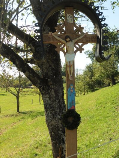 Das Wetterkreuz bei der Ortschaft Tauern in der Gemeinde Frasdorf wurde grundlegend renoviert. Paul Panzer aus Prien hat das gusseiserne Kruzifix und die Marienfigur gründlich entrostet, neu grundiert und künstlerisch bemalt.