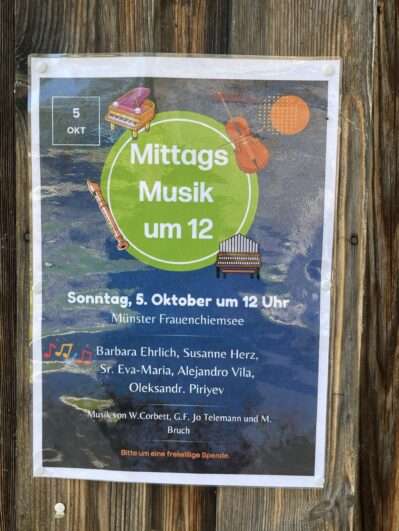 Am Sonntag, 5. Oktober wird um 12 Uhr im Münster Frauenwörth eine Mittags-Musik angeboten.