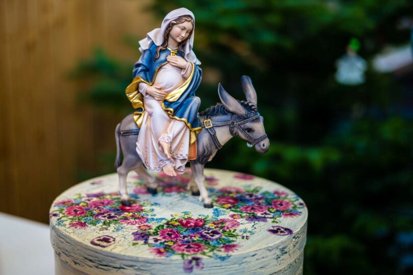 Eine Statue in Gestalt der schwangeren Maria wandert von Haus zu Haus,  von Familie zu Familie.  Dort wo sie aufgenommen wird, bereitet man der Figur in der Wohnung einen schönen Platz.