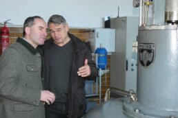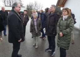 Foto 1 (mmü): Ralf Holzner, einer der Chefs der Wasserkraftanlage in Höllthal, im Gespräch mit dem bayerischen Wirtschaftsminister, stellvertretenden Ministerpräsidenten und FW-Chef Hubert Aiwanger. Über 25 Abgeordnete machten sich im Rahmen der dreitägigen Winterklausur der FW-Landtagsfraktion ein Bild. Auch viele Pressevertreter waren angereist.