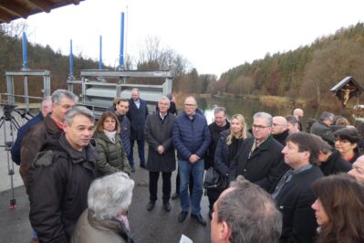 An ihrem zweiten Chiemsee-Klausurtag hat die FW-Landtagsfraktion vormittags in der Gemeinde Seeon-Seebruck die Wasserkraftanlage Höllthal an der Alz besucht. Diese besteht aus einem konventionellen Kraftwerk mit einer 50 Jahre alten Kaplan-Rohrturbine und einem weiteren, 2016 in Betrieb gegangenen modernen Kraftwerk mit zwei Wasserkraftschnecken. Betrieben wird die Anlage, mit der man rund 1600 Haushalte mit Strom versorgt, von der Familie Holzner-Baumann aus Ebersberg, die sich sehr über den hohen Besuch freute und die flammenden Appelle für die Wasserkraft, eine der ältesten von Menschen genutzte Form der erneuerbaren Energien, gerne vernahm. Auch im Bereich der Höllthalmühle sei die Wasserkraft bereits seit etwa 1650 genutzt worden, verriet Betreiber Ralf Holzner. „Wir Freie Wähler setzen uns dafür ein, dass die kleine Wasserkraft nicht nur erhalten, sondern sogar wieder ausgebaut wird“, stellte der bayerische Wirtschaftsminister, stellvertretende Ministerpräsident und FW-Chef Hubert Aiwanger klar. Der FW-Fraktionsvorsitzende Florian Streibl verwies auf die erfolgreiche Bundesratsinitiative zur Rettung der Wasserkraft, die man gemeinsam mit dem Koalitionspartner CSU gestartet habe, um die Förderung aufrechtzuerhalten. Die SPD-geführte Ampelregierung in Berlin habe alles dafür getan habe, die Nutzung der Wasserkraft in Bayern einzubremsen, warf der energiepolitische Sprecher der FW-Landtagsfraktion Rainer Ludwig ein. Angesichts der aktuellen Energiekrise brauche man jede Kilowattstunde Strom, die lokal und ohne Emissionen erzeugt werden könne und dazu zähle ganz klar die kleine Wasserkraft. Technisch über die Jahrzehnte weiterentwickelt sei diese ökologisch und für das Fischvorkommen im Artenschutzbereich kein Problem, so Aiwanger. Deshalb müsse man sie politisch wieder besser unterstützen „und eben nicht ständig bekämpfen, ständig die Auflagen erhöhen, ständig alles verteuern und Bürokratie aufziehen, um die Leute zum Aufhören zu zwingen, das wollen wir nicht“. Man brauche die Wasserkraft, die es länger gebe als deren Gegner. Leider Gottes habe man in den vergangenen Jahren sehr viele Standorte verloren. Streibl bezeichnete die Wasserkraft als „unserer Heimatenergie, Energie, die Gott uns gegeben hat hier in unserer Region“. Die beste Energie sei jene, die vor Ort erzeugt und dort auch verbraucht werde. Dass die Nutzung der Wasserkraft zur Energiegewinnung umweltverträglich und fischfreundlich funktionieren kann, beweisen die Wasserkraftwerke in Höllthal. Chefin Marion Baumann verwies auf eine fischökologische Studie, bei der man in Bezug auf die Fischmortalität sehr gut abgeschnitten habe. „Das Landesamt für Umwelt hat uns in einem Schreiben mitgeteilt, dass wir mit unseren Anlagen sehr fisch- und gewässerfreundlich sind, darauf sind wir sehr stolz“, so Holzner. Es stimme nicht, wie es von den Gegnern immer pauschal heiße, dass die Wasserkraft schädlich sei für die Natur und Umwelt. Ihm zufolge sei es erfreulich, dass die Freien Wähler für die Wasserkraftnutzung seien. Er wünscht sich aber eine noch breitere politische Unterstützung, da es die kleine Wasserkraft hierzulande oft nicht leicht habe. Die vier großen Energiekonzerne RWE, E.ON, Vattenfall und EnBW würden den Kuchen am liebsten unter sich aufteilen, so Holzner. Der Standort der eigenen Wasserkraftanlage an der Alz sei optimal gelegen, denn dank des vorgelagerten Chiemsees seien die Flusspegelschwankungen nicht so groß wie beispielsweise an Isar, Inn und Traun und man habe immer genügend Wasser zur notwendigen Stromerzeugung zur Verfügung.