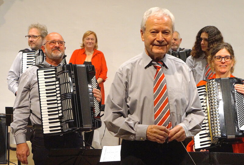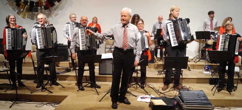Dies war ganz besonders auch bei „Bohemian Rhapsody“ von Freddie Mercury zu erleben – ein ganz besonderes Klangerlebnis mit Erinnerungswert. Der krönende Abschluss war das Medley-Arrangement mehrerer Chansons von Udo Jürgens im Big-Band-Sound, arrangiert von Orchestermitglied Gerhard Schmidt. Mit all diesen Stücken schuf das Akkordeonorchester bezaubernde Stimmungen, in die die Besucher eintauchen durften.
