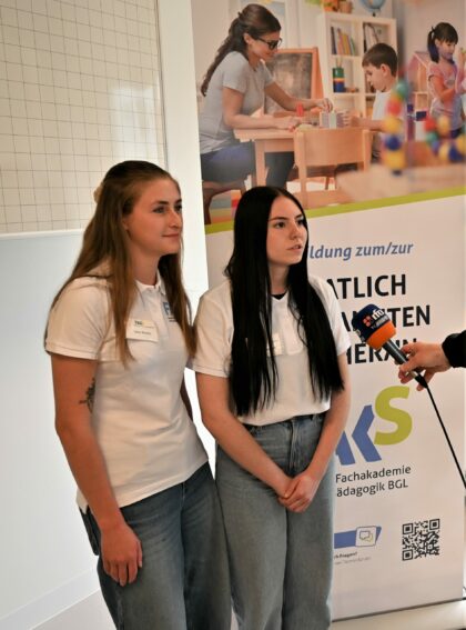 Wohnortnah mit der Option auf Leitungskompetenzen: für Lena Wachs (links) und Vivian Dunkel unschlagbare Argumente, nach ihren Ausbildungen in der Kinderbetreuung an der Fachakademie in Freilassing zu studieren.