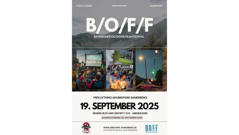 Am Freitag, den 19. September 2025, heißt es am Samerberg wieder: Film ab unter freiem Himmel! Das Bayrische Outdoor Film Festival (B/O/F/F) macht einen Stopp im Bikepark Samerberg und bringt echte Abenteuer, faszinierende Geschichten und atemberaubende Bilder auf die große Leinwand.