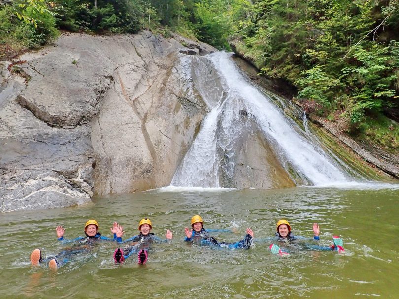 Geführte Canyoning-Touren in den Alpen sind eine einzigartige Möglichkeit, Spaß und Spannung in den Schluchten eines Bergbaches zu erleben – davon zeugt diese aktuelle Aufnahme. Nähere Informationen gibt es bei Canyoning Touren im Allgäu – www.allgaeucanyoning.com.