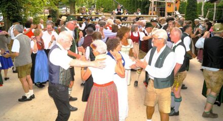 Endlich war es wieder so weit: Für einen Vormittag wurde der Wirtsgarten des Maxlrainer Bräustüberls zum großen Tanzboden. Der Kulturförderverein Mangfalltal in Maxlrain e.V. und der Volkstanzkreis Rosenheim e.V. veranstalteten gemeinsam zum 18. Mal das „Maxlrainer Morgentanzl“, einen frühmorgendlichen alpenländischen Volkstanz unter freiem Himmel, der die Tradition der Dienstbotenbälle des 19. Jahrhunderts wiederaufleben lässt.