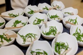 Im Anschluss an die Vorstellung hatten die Teilnehmer Gelegenheit, beim Light Lunch einen Eindruck von den kulinarischen Besonderheiten Friauls zu gewinnen. Die präsentierten Produkte stehen beispielhaft für die kulinarische Identität der Region: Der luftgetrocknete San Daniele-Schinken, der in der gleichnamigen Gemeinde hergestellt wird. Der Montasio-Käse, ein halbfester Käse mit langer Reifung, welcher ausschließlich aus Kuhmilch von Almkühen hergestellt wird. Ein fester Bestandteil der friulanischen Küche ist Polenta – aus Maismehl zubereitet und in vielfältiger Weise verwendet. Beispielsweise als Beilage des Frico, ein traditionelles Gericht aus Käse und Kartoffeln, außen knusprig und innen zart. Ergänzt wird das Menü durch eine Auswahl an regionalen Weiß- und Rotweinen, die die klimatische und geologische Vielfalt Friauls widerspiegeln.