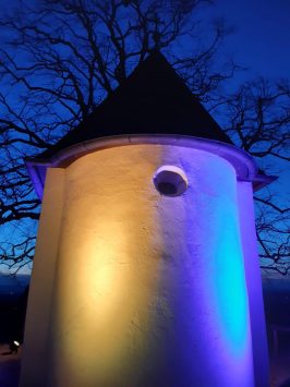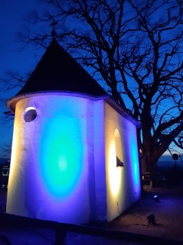 Die Aussichtskapelle in Söllhuben war in gelb-blau illuminiert und im Dunkel des Abends war die Anzahl der Menschen nicht mehr überschaubar, denen das Thema Frieden ein Anliegen war. Besonders wurde der Abend noch dadurch, dass die ersten ukrainischen Flüchtlinge bereits in Riedering angekommen sind und an dem Abend mit den Vertretern des Helferkreis mit an der Kapelle waren. Die Geschwister Fischer gaben der halben Stunde den passenden musikalischen Rahmen. Gemeindereferent Tobias Gaiser sprach von einer Vision einer anderen Welt, einer friedlichen Welt, die wir mitten unter und beginnen können. Bürgermeister Christoph Vodermaier erinnerte an die Verantwortung des Gemeinwesens, gerade in der momentanen Zeit und endete mit einem Zitat aus dem Gebet der Vereinten Nationen Nach einem Friedensgebet einer Jugendlichen trugen die Glocken der Pfarrkirche Söllhuben den Segen und die Sehnsucht nach Frieden akustisch und die ganze Gegend, während alle Anwesenden einfach schwiegen… trotz aller Sorgen, konnte man beseelt sein, da die Sehnsucht nach Frieden von so vielen mitgetragen wurde.
