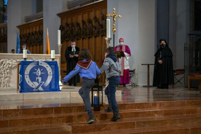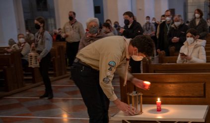 Pfadfinderinnen und Pfadfinder tragen das „Friedenslicht aus Betlehem“ am dritten Adventssonntag, 12. Dezember, nach München. Bei einem ökumenischen Jugendgottesdienst wird das Licht um 15.30 Uhr im Münchner Liebfrauendom feierlich ausgesandt. Der Bischofsvikar für die Seelsorgsregion München, Weihbischof Rupert Graf zu Stolberg, leitet die Feier mit dem evangelisch-lutherischen Regionalbischof Christian Kopp und dem griechisch-orthodoxen bischöflichen Vikar in Bayern, Archimandrit Peter Klitsch. Für die Teilnahme am Gottesdienst ist eine Anmeldung erforderlich. Das Anmeldeformular und weitere Informationen finden sich online unter www.friedenslicht-muenchen.de. Vor Ort gilt das Infektionsschutzkonzept für katholische Gottesdienste im Erzbistum München und Freising, darunter das Einhalten eines Abstandes von 1,5 Metern zueinander sowie die Pflicht zum Tragen einer FFP2-Maske, außer am Platz. Der Gottesdienst wird als Livestream übertragen unter www.erzbistum-muenchen.de/stream.
