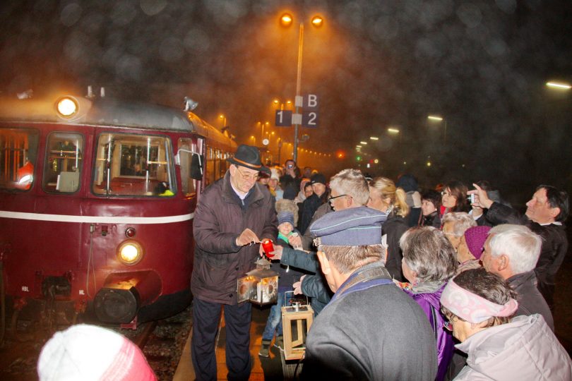 Auch für die Chiemgauer Lokalbahn ist es nun schon eine langjährige Tradition geworden kurz vor Weihnachten dieses Friedenslicht aus Salzburg zu holen, um es dann mit einer Sonderfahrt entlang der Strecke zu verteilen. Zwar ist die Mitfahrt im Zug bereits seit Längerem restlos ausgebucht, doch freuen sich die Aktiven der Chiemgauer Lokalbahn sehr auf zahlreiche Besucher, die sich das Friedenslicht mit Laternen und Kerzen an ihren Stationen abholen.