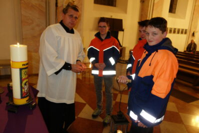 Das Friedenslicht aus Bethlehem überbrachte die Jugendfeuerwehr Reit im Winkl zu Beginn des Vorabendgottesdienstes zum dritten Adventssonntag in die Pfarrkirche St. Pankratius. Im Rahmen einer Lichtstafette wird das an der Flamme der Geburtsgrotte Christi in Bethlehem entzündete Licht in die ganze Welt weitergegeben.