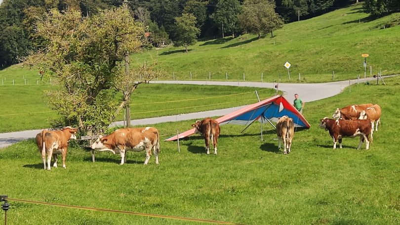 Friedlicher Rindvieher-Empfang für Samerberger Drachenflieger