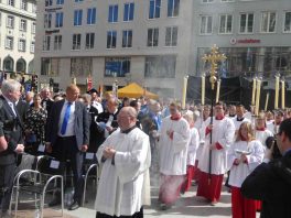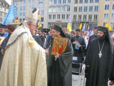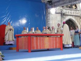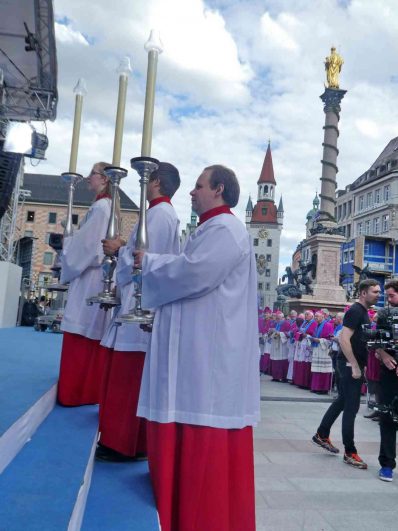 Seit 100 Jahren gibt es in Bayern das Fest „Patrona Bavariae“. 1917 in der Regentschaft von Bayerns König Ludwig III. und gerade zu jener Zeit als in Fatima die Gottesmutter drei Hirtenkindern erschien, wurde das Land Bayern unter den Schutz der Heiligen Maria gestellt. Während Papst Franziskus in Fatima zugegen war, versammelten sich in München nach einer siebenjährigen Pilgerschaft die bayerischen Gläubigen an der Mariensäule am Marienplatz zusammen mit den bayerischen Bischöfen mit Kardinal Reinhard Marx an der Spitze.