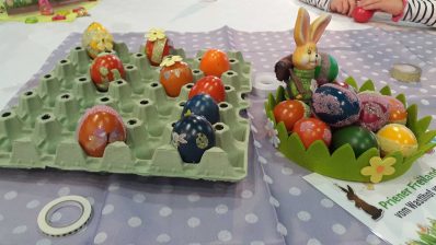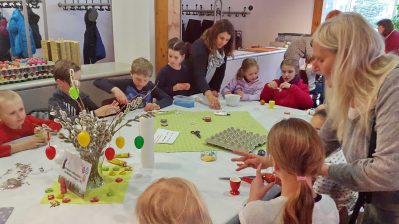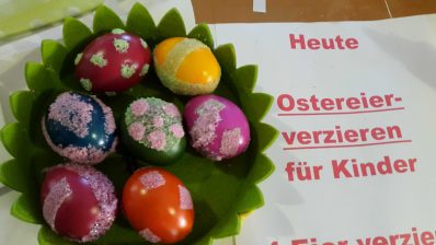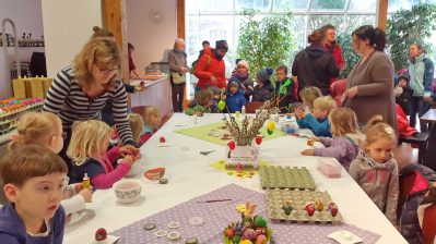 Kalte Füße braucht der Osterhase in Prien-Elperting wohl nicht zu bekommen, denn beim dortigen Wastlhof leben viele fleißige Hühner, die ihn dieser Ostertage gut mit Eiern versorgen. Versorgt wurden dabei auch Priener Familien, die sich im Haus des Gastes trafen. Die Kinder des Katholischen Kindergartens St. Irmingard und die Kinder der Ferienbetreuung der Diakonie an der Franziska-Hager-Grundschule Prien waren im Rahmen der Veranstaltung Osterallerlei der Prien-Marketing Gesellschaft von Kindergartenmama Maria Riepertinger zum Verzieren der Priener Wastlhof Ostereier eingeladen.