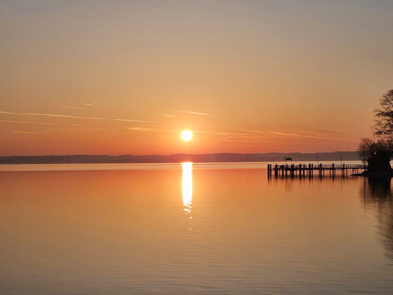 Die Sonne am Morgen kann schon vielversprechend sein – so besonders dann, wenn sie im Osten aufgeht, über dem Chiemsee ein frohmachendes Farbenspiel beginnt und ein Wochenende mit viel Frühjahrsfreuden verspricht.