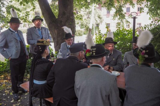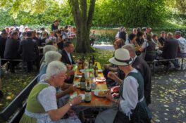 Im Anschluss spendierte der Pfarrgemeinderat Mariä Himmelfahrt unter Leitung von Veronika Wylezol gekühlte Getränke und Mittagessen im Schatten der Bäume am Kriegerdenkmal unterhalb der Pfarrkirche, wo der gelungene Vormittag gemütlich ausklang.