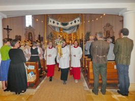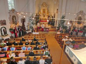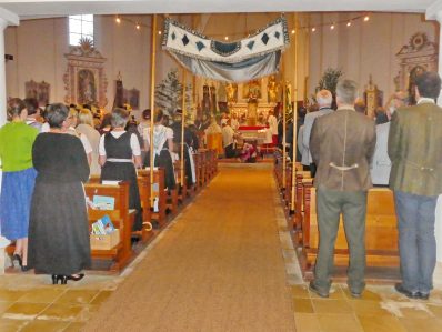 Gerade als zu abendlicher Stunde am Fronleichnamstag der lange ersehnte Regen kam, machte dieser den Mitgliedern des Pfarrgemeinderates von Wildenwart bei den Vorbereitungen für die Fronleichnamsprozession einen Strich durch die Rechnung. Und so wurde kurzfristig entschieden, die vier in Prutdorf und Wildenwart geplanten Außen-Stationen mit Gebeten und Gesängen an den beiden Seitenaltären und am Hauptaltar zu machen. Den Gottesdienst feierte Ruhestandspfarrer Konrad Kronast und die musikalische Gestaltung übernahmen die Mitglieder des Wildenwarter Kirchenchores unter der Leitung von Ludwig Maier.
