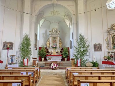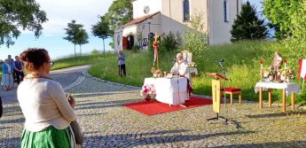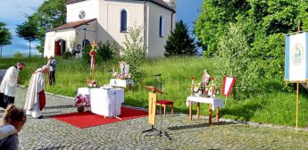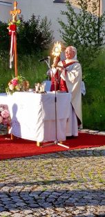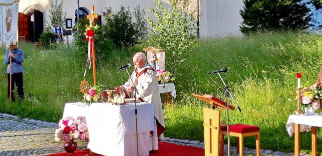 Gutes Wetter machte es möglich, dass die Pfarrgemeinde “Christkönnig” von Wildenwart die heurige Fronleichnamsfeier im Corona-Rahmen im Freien abhalten konnte. Zelebrant war dabei Pfarrer i. R. Konrad Kronast. Er bedankte sich bei den vielen Wildenwarter Ehrenamtlichen und Mitgliedern der kirchlichen Gremien für ihr Mitwirken mit einem herzlichen “Vergelt´s Gott”. Sein besonderer Dank galt dafür, dass der Platz für die Messfeier ebenso liebevoll und festlich hergerichtet war wie die Kirche im Innern. Überall war das farbige Erscheinungsbild auf Fronleichnam abgestimmt.