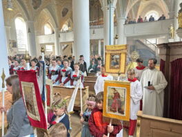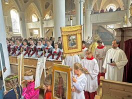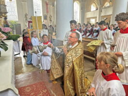 Witterungsbedingt wurde in Aschau i.Chiemgau in diesem Jahr der Fronleichnams-Gottesdienst mit einer festlichen Prozession in der Pfarrkirche abgehalten.