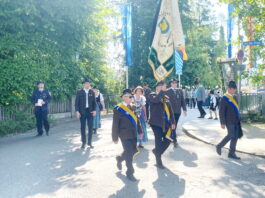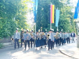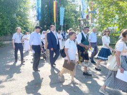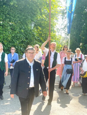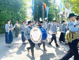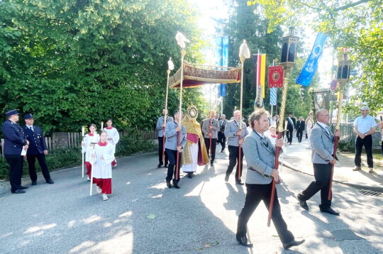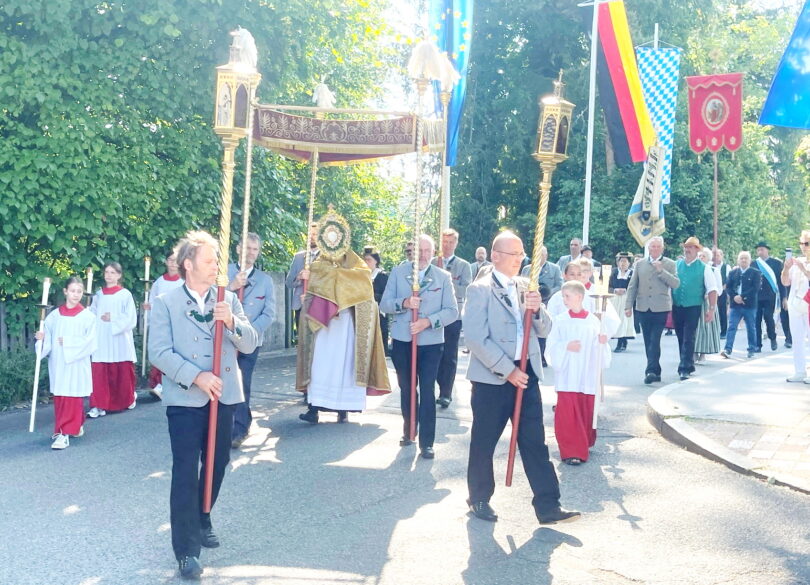Fotos: Hötzelsperger – Farbenfroh zogen die Gläubigen, Vereine und die Blaskapelle vom Marktplatz in den Ortsteil Gries zur zweiten Altar-Station.