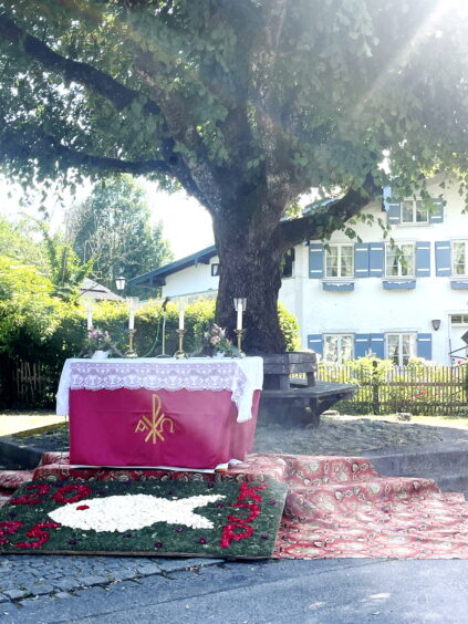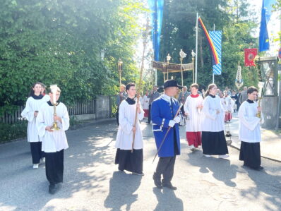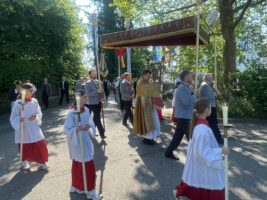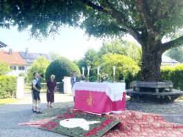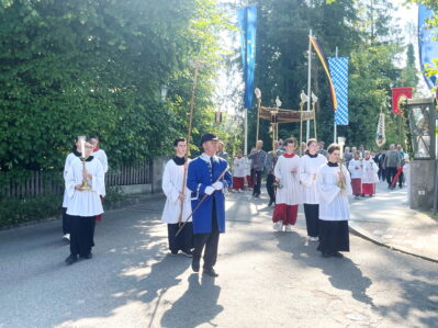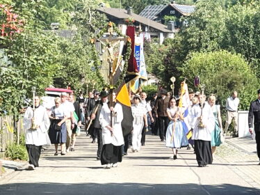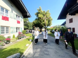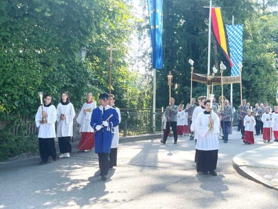 Eindrucksvoll war der Fronleichnams-Gottesdienst mit anschließendem Gang entlang der Prien und durch den Ortsteil Gries bis zum ebenfalls schön hergerichteten Altar am Rathaus in der Pfarr- und Marktgemeinde Prien a. Chiemsee.