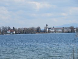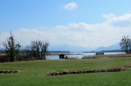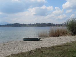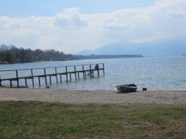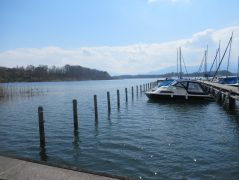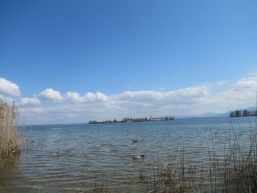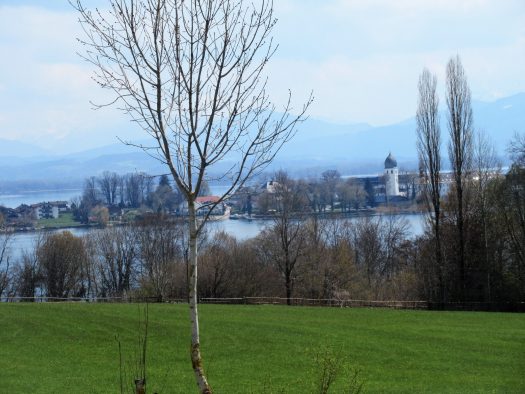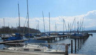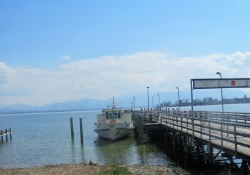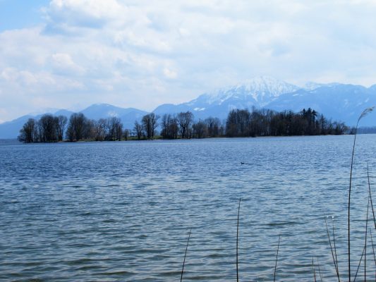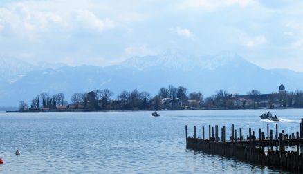 Es wird auch schon langsam grün, aber man hat am Chiemseeuferweg noch guten Durchblick auf den See. In Gstadt wartet ein Schiff auf Fahrgäste, es gibt trotz Corona-Lockdown eingeschränkten Schiffsverkehr. An der Anlegestelle gibt es Cafe ToGo und Kleinigkeiten zum Verzehr. Auch im “Inselblick” gibt es zeitweise Speisen zum Mitnehmen. Wir haben aber was dabei und machen in unserer kleinen Bucht in der Nähe vom Aussichtsturm Picknick.