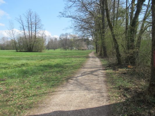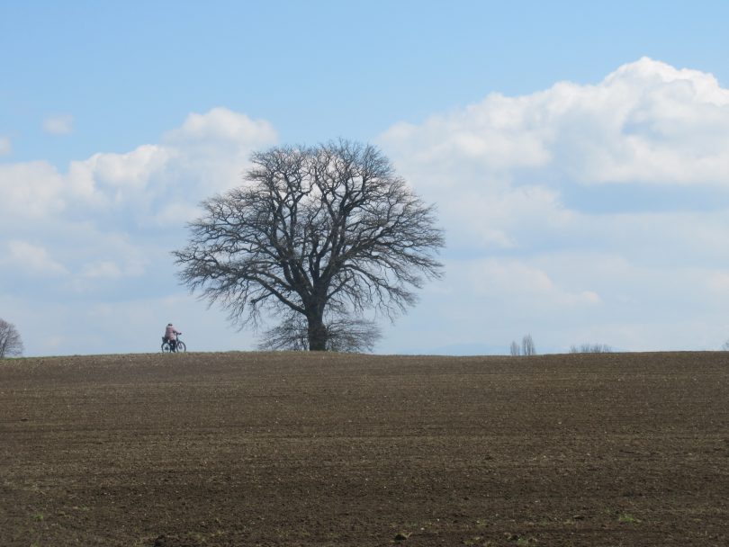 Die Sonne scheint, aber es ist für Mitte April ziemlich kalt, sogar um die Mittagszeit nur um die 8 Grad. Zum Radeln eigentlich zu kalt, aber warm angezogen geht´s schon – beim Langlaufen ist es meist viel kälter.