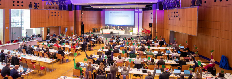 In einer Gedenkminute gedachte die Synode des Leids, das queer lebende Menschen in der Kirche erfahren haben: „Wir erkennen heute, dass queere und queer lebende Menschen in der Kirche großes Leid erfahren haben. Dienstliche Ungleichbehandlungen, Behinderung von Karrieren, Durchgriff ins Privatleben mit Zwangsfolgen für die Lebensläufe und die Aufforderung zum Leben in Doppelmoral haben zwar der damals geltenden Rechtslage nicht widersprochen, waren und sind jedoch unangemessen, ungerechtfertigt und diskriminierend. Einzelne Verantwortliche und die Kirche als Ganze sind an betroffenen Personen schuldig geworden. Zwar kann niemand Vergangenes ungeschehen oder wieder gut machen. Umso mehr muss aber künftig alles dafür getan werden, solch unangemessene Vorgehensweisen zu verhindern. Daher besteht die vordringliche Aufgabe darin, auf allen Ebenen die handelnden Personen zu sensibilisieren und die strukturellen wie rechtlichen Rahmenbedingungen entsprechend anzupassen.“