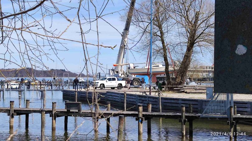 Sowohl an Land auch auf Wasser laufen derzeit die Vorbereitungen für die hoffentlich bald wieder kommende Freiluft- und Freizeit-Saison am Chiemsee – wie diese aktuellen Aufnahmen in Bernau-Felden zeigen.