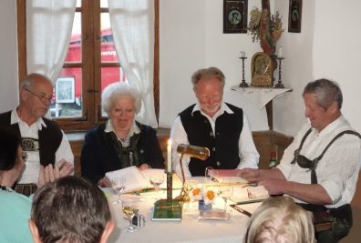 Fröhliche Frühlingsbotschaften und teils nachdenkliche Verserl boten zum wiederholten Mal die Priener Verserlschreiber beim Hoagascht „Da Lenz is do“. Bis auf den letzten Platz war die Stube des Priener Heimatmuseums besetzt. Die Zuhörer lauschten und erfreuten sich an den vielfältigen Texten über den Frühling, aus dem Leben und allerlei sonstiger Begebenheiten. Dabei passten die Verserlschreiber ihre Texte gegenseitig meist dem vorhergehenden Text weitgehend an und so gab es mal heitere, mal ernstere oder nachdenkliche Verse zu hören. Dazwischen spielten Rupert Schauer und Hannes Fischer alpenländische Weisen, virtuos mit Harfen und Ziach. Die Priener Verserlschreiber, Heidemarie Huber, Lothar Rechberger, Sepp Obermüller und Ernst Reiter ernteten regen Beifall. Helga Kohn konnte aus gesundheitsgründen leider diesmal nicht teilnehmen, was einige Zuhörer mit Bedauern zur Kenntnis genommen hatten. Ein Dank galt den „guten Geistern“ des Heimatmuseums, Rosi Donauer und Marille Rath, welche im Hintergrund für die Versorgung der Gäste tätig waren.