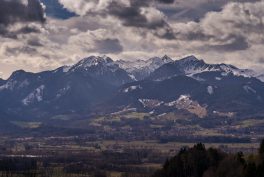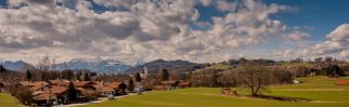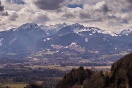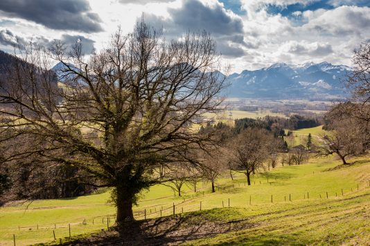 Die Sonne schmilzt dahin, das Tageslicht wird immer stärker und an den Bäumen wird ein erstes Grün sichtbar – dies zusammen mit der hügeligen Landschaft des Samerbergs und mit den mächtigen Bergen im Hintergrund ergeben fast malerische Foto-Aufnahmen, die zu mehr Frühlingsgefühlen Anlass geben.